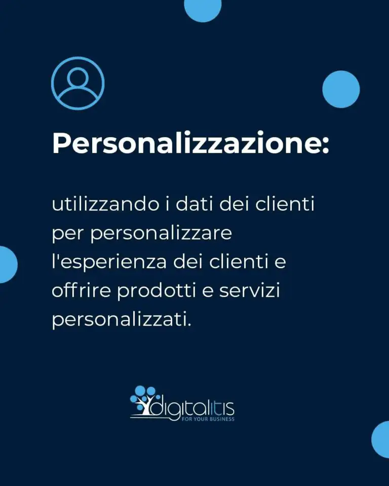 ▶ Personalizzazione: attraverso i dati raccolti rendere uniche le su misura le proposte ai clienti