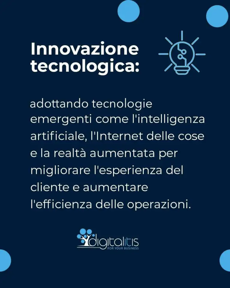 ▶ Innovazione tecnologica: adottando tecnologie emergenti come l’intelligenza artificiale, l’Internet delle cose e la realtà aumentata per migliorare l’esperienza del cliente e incrementare l’efficienza delle operazioni.