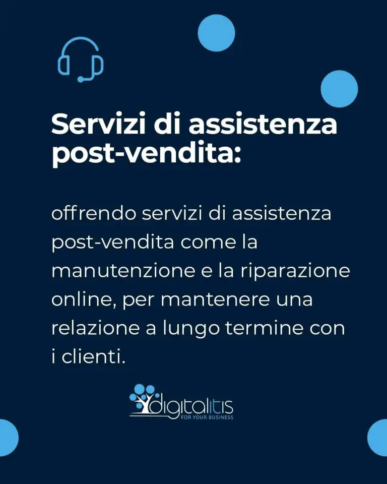 ▶ Servizi di assistenza post-vendita: attraverso servizi di manutenzione e riparazione online, per mantenere una relazione a lungo termine con i clienti.